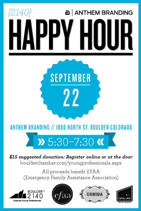 On Wednesday Sept 22 from 5:30-7:3opm Anthem Branding is partnering with 2140 to host the September Happy Hour. With the recent wildfires in our neck of the woods, the non-profit we’ve decided to benefit could not be a better choice. EFAA (Emergency Family Assistance Association) has helped thousands of families in need, providing food, shelter, rent assistance, furniture and more. They are currently playing a critical role in supporting the families that have been devastated by the recent Fourmile Wildfire and the ongoing Larimer County Wildfire.
